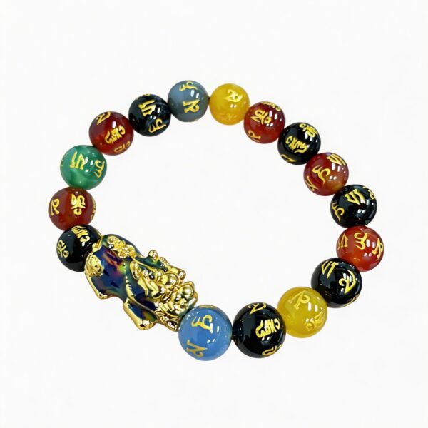 Color Changing Pixiu Bracelet with Tibetan Six Syllable Mantra Agate Beads