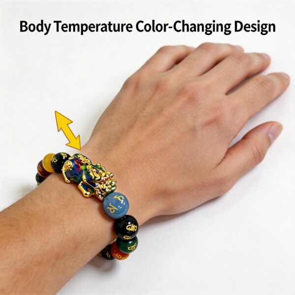 The temperature-responsive Pixiu adds a fascinating color-changing element that makes this bracelet stand out.