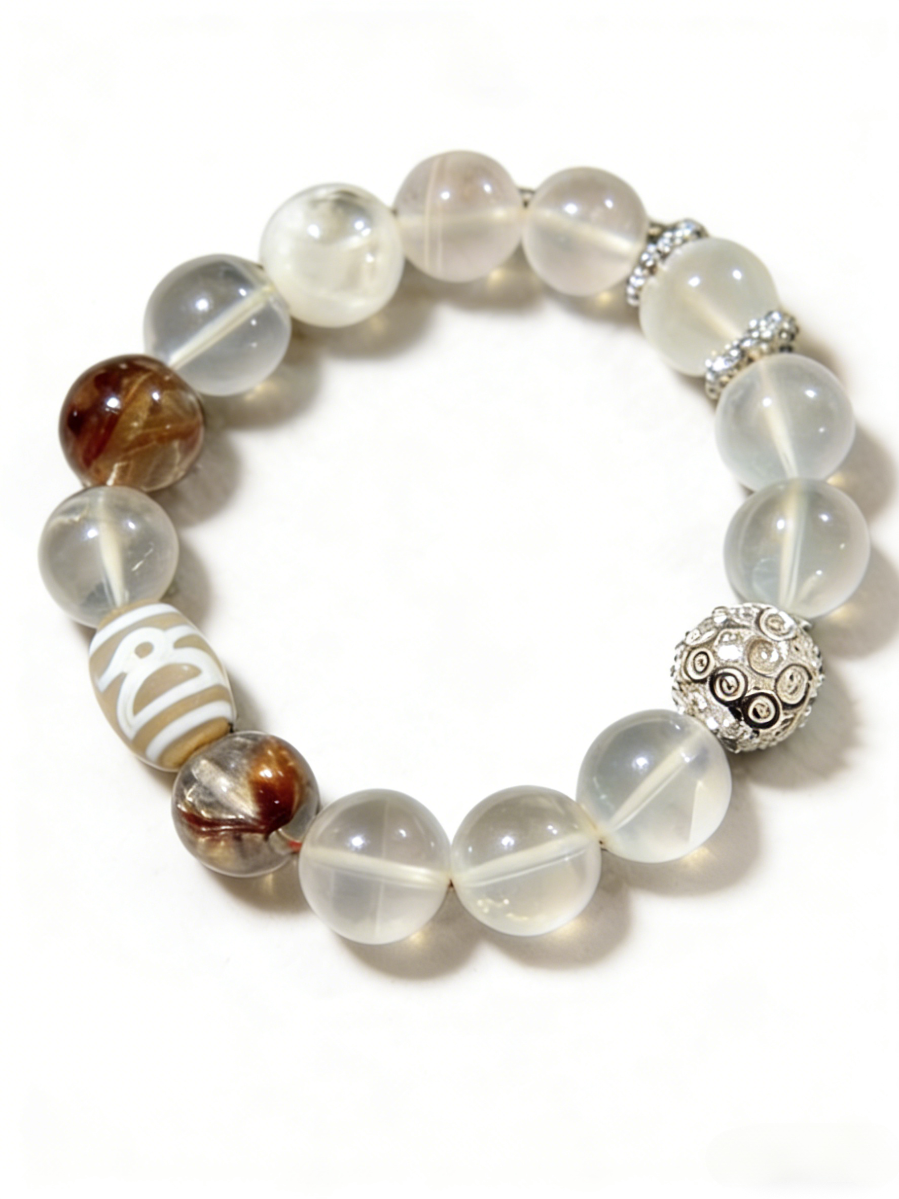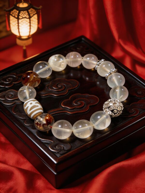 Step into a life of power and prosperity with the Golden Abundance Bracelet—a handcrafted piece that combines the amplifying energy of Clear Quartz, the blooming abundance of Flower Agate, and the protective wisdom of a Water Wave Dzi Bead.