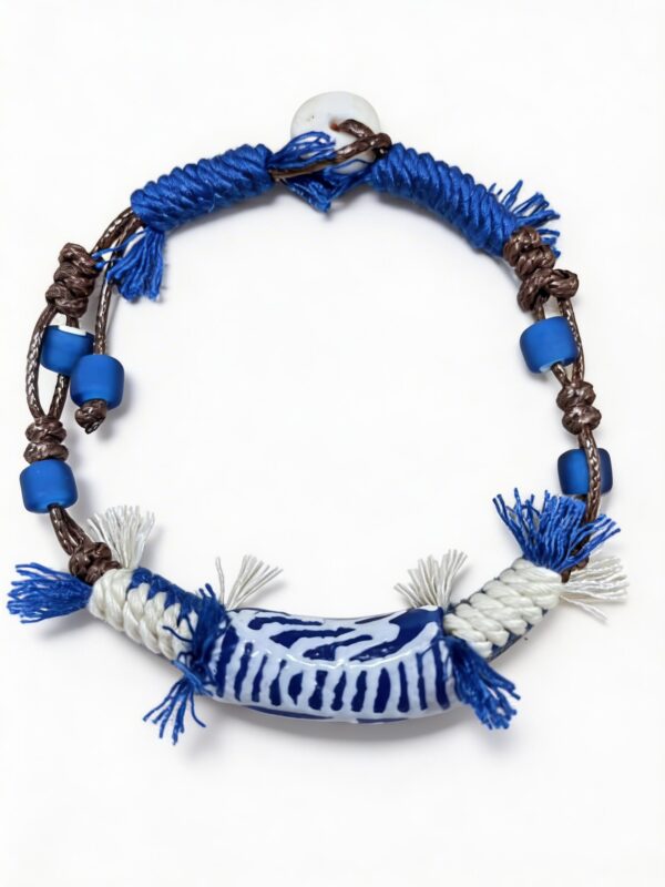 Every hand-painted blue stroke, every woven cord, every frayed tassel tells a story—of African artisans, coastal trade routes, and the quiet magic of handcrafted art. Whether you wear it as a daily talisman or gift it to a kindred spirit, this African blue trade bead bracelet is more than jewelry; it’s a piece of living heritage, crafted just for you. Wear it proudly, and let its cobalt blue glow light your path.