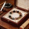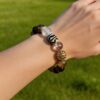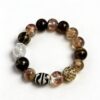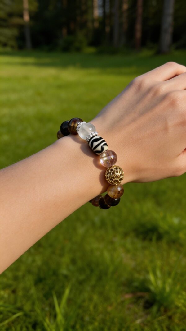 Elegant silver spacers introduce balance to the bracelet’s strong earthy tones while symbolizing clarity and intuition.