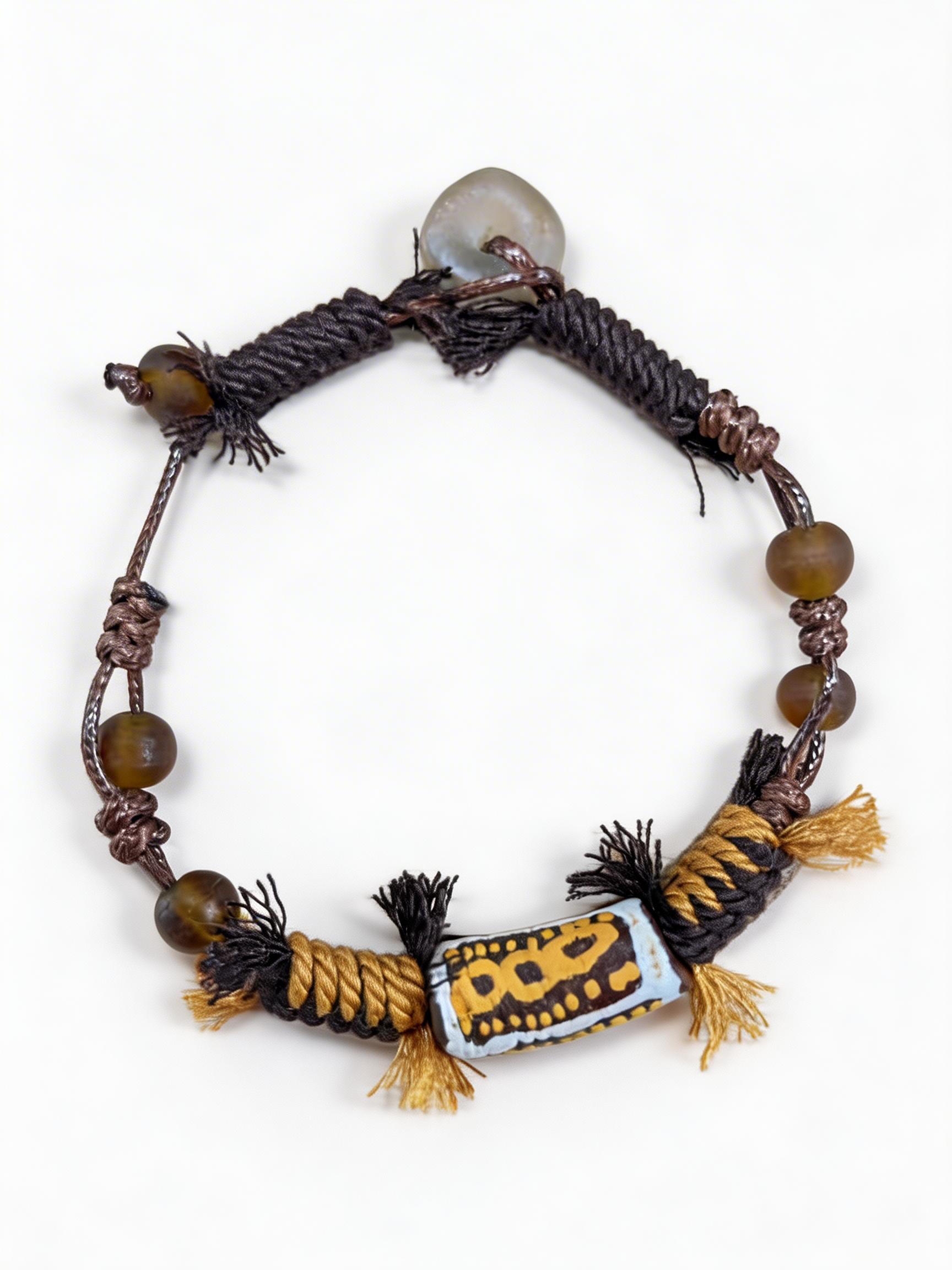 Every hand-painted stroke, every tribal pattern, every frayed tassel tells a story—of African artisans, of cross-continental trade, of the unbroken thread of human craft. Whether you wear it as a personal talisman or gift it to a kindred spirit, this African trade bead is more than jewelry; it’s a piece of living history, crafted just for you. Wear it proudly, and let its bold spirit tell your story.